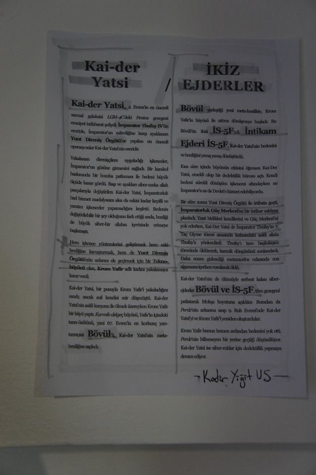 Zoe Scoglio insan ve hayvan arasında yarattığı ürkücüsü bütünlükle kabinelerin mirablia bölümünde referans olabilecek bir video ile sergiye dahil olurken, İpek Çankaya’nın halka sanat projesi’nin ilk üç yılını, ruhunu, hayallerini ve gerçeklerini anlattığı kitabı kabinenin bibliotheca bölümünün raflarında yerini aldı.